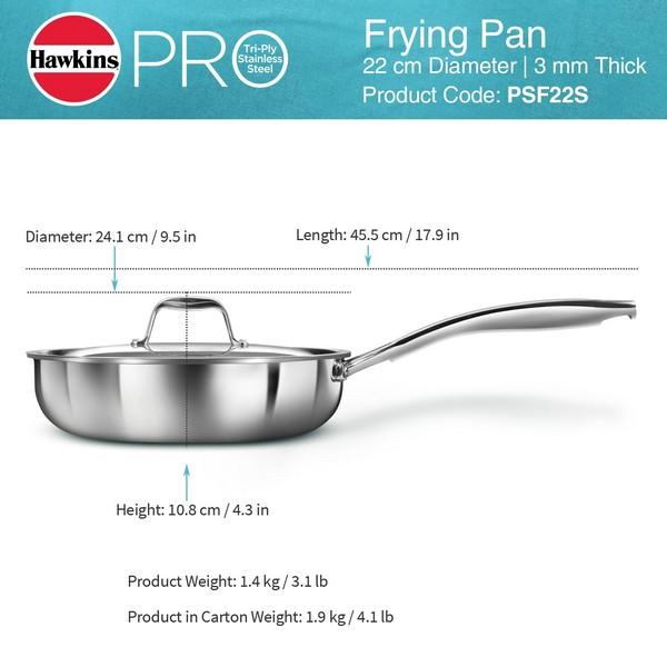 Hawkins Pro Tri-Ply Stainless Steel Frying Pan 22cm