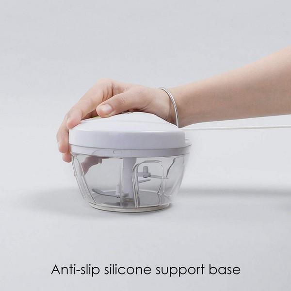 SILICONE-SUPPORTED BASE: Classic String Chopper comes with a silicone ring at the base which provides a firm hold when kept on the table/kitchen platform, thus making it easier to use by holding the chopper with one hand and pulling the string with the other.