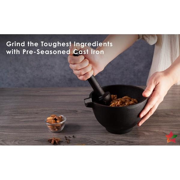If you want to grind whole spices, nuts, or other cooking ingredients, the Wonderchef Forza Pre-seasoned Cast Iron Mortar and Pestle can help you do it all. It is a must-have item in your kitchen due to its convenience of use. This mortar and pestle also enhance the flavour of any food you make as it is made of iron. Additionally, this mortar and pestle gives the feeling of traditional pounding and grinding, thanks to its heavy and robust construction.