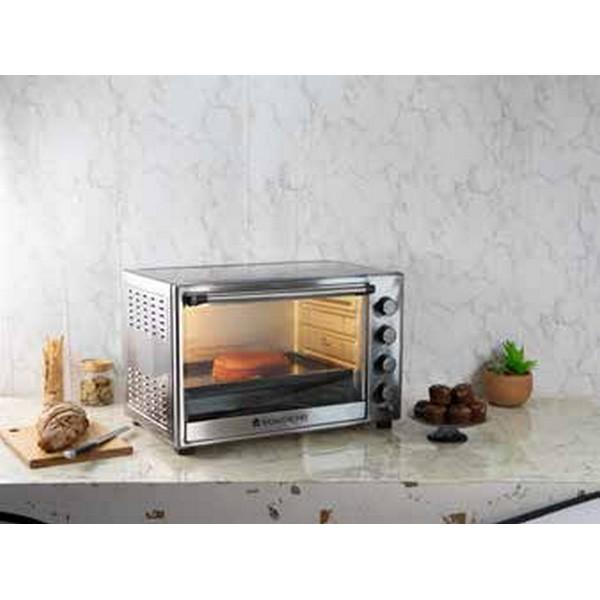 Includes OTG, Chromed wire rack, Baking and grilling tray and tray handle Capacity: 60 litres, Suitable for 4-6 people; Dimensions: 63*44*43 cm Power Consumption: 220-230V~50Hz~2000W; Warranty: 2 years Material: Stainless Steel; Heating Type: Grill + Convection and Control Type: Rotating Knob; Heating element selector: top, bottom, sides Wonderchef products are inspired by Italian Design and adhere to German Quality Standards
