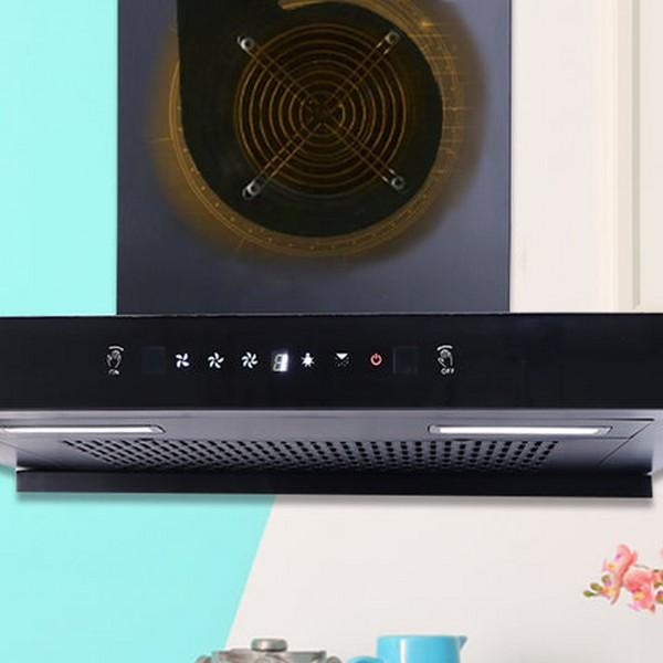 Classy and efficient low noise chimneys, with LED lights, powerful suction capacity of 1400 M 3 / h , gesture and touch control for speed and power, LED light, tempered glass, auto-clean technology.